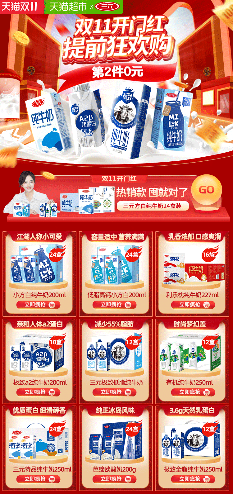 【西南华南1件5折,2箱48盒到手68.9元,88vip到手65.9元】谭松韵代言~三元大牌方白纯牛奶!优质奶源,全脂灭菌乳,口感香醇,老人小孩都爱喝,好喝又营养!