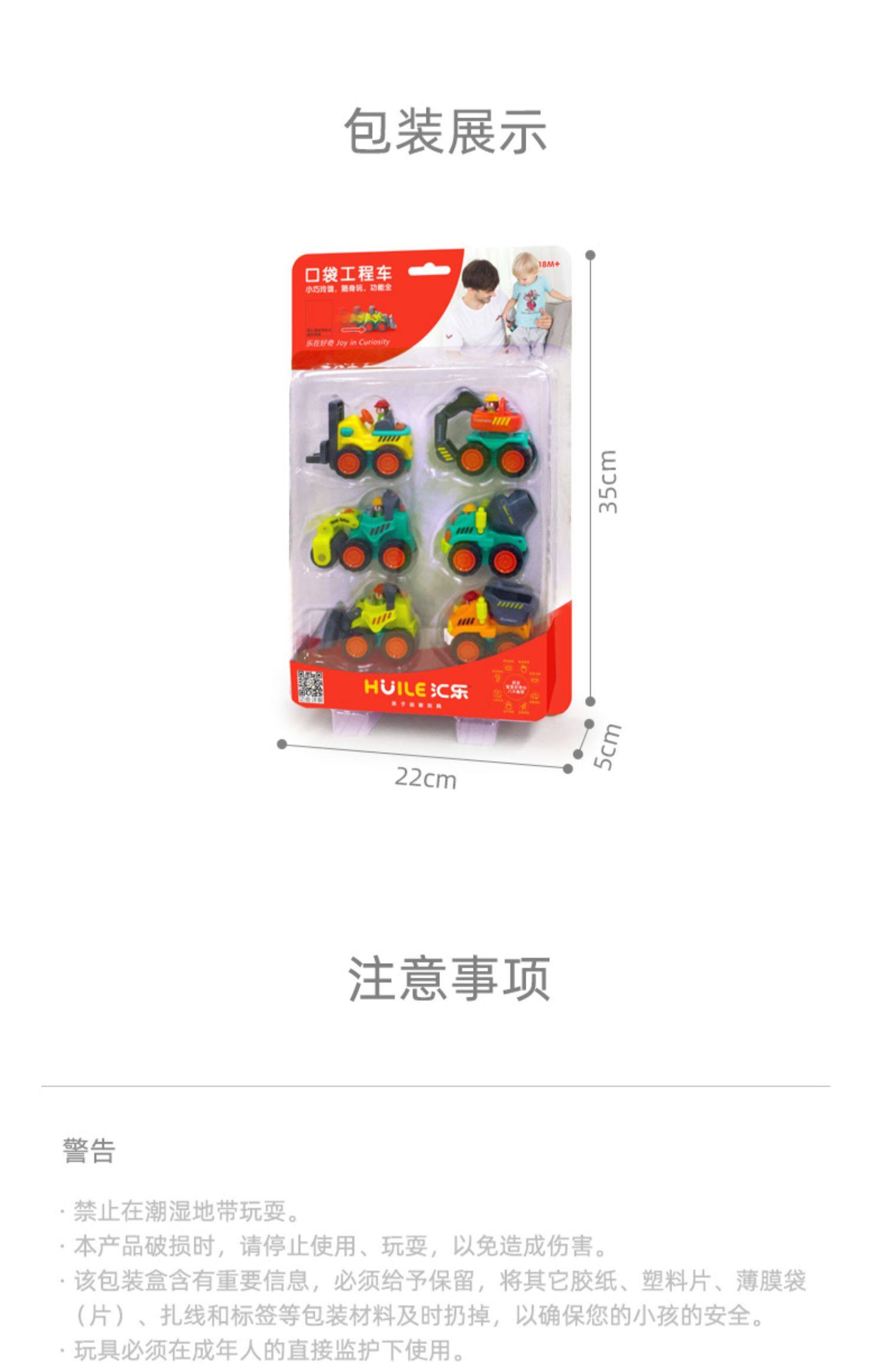 过年送孩子!【汇乐】亲子益智工程车玩具,挖掘机、翻斗车、推土机、压路机、搅拌机、叉车,小巧耐摔,随带随玩,无需电池,小手推拉前进,倒车都顺畅无阻,多处关节可活动,增加玩耍趣味性,趣味识车,锻炼手部!