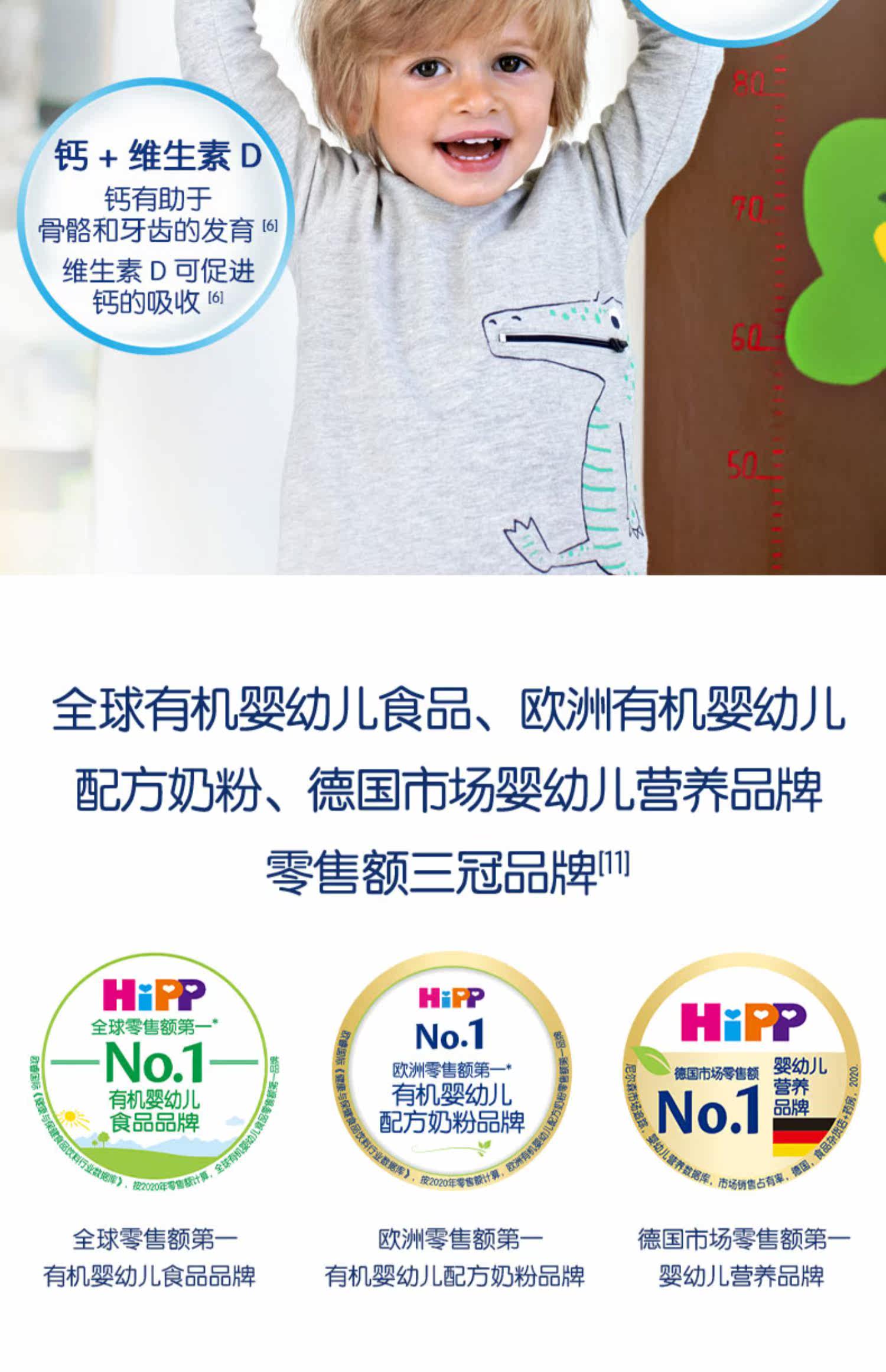 【单件87折】HiPP喜宝德国珍宝版幼儿配方益生菌奶粉1+段12个月以上600g*6盒,超赞