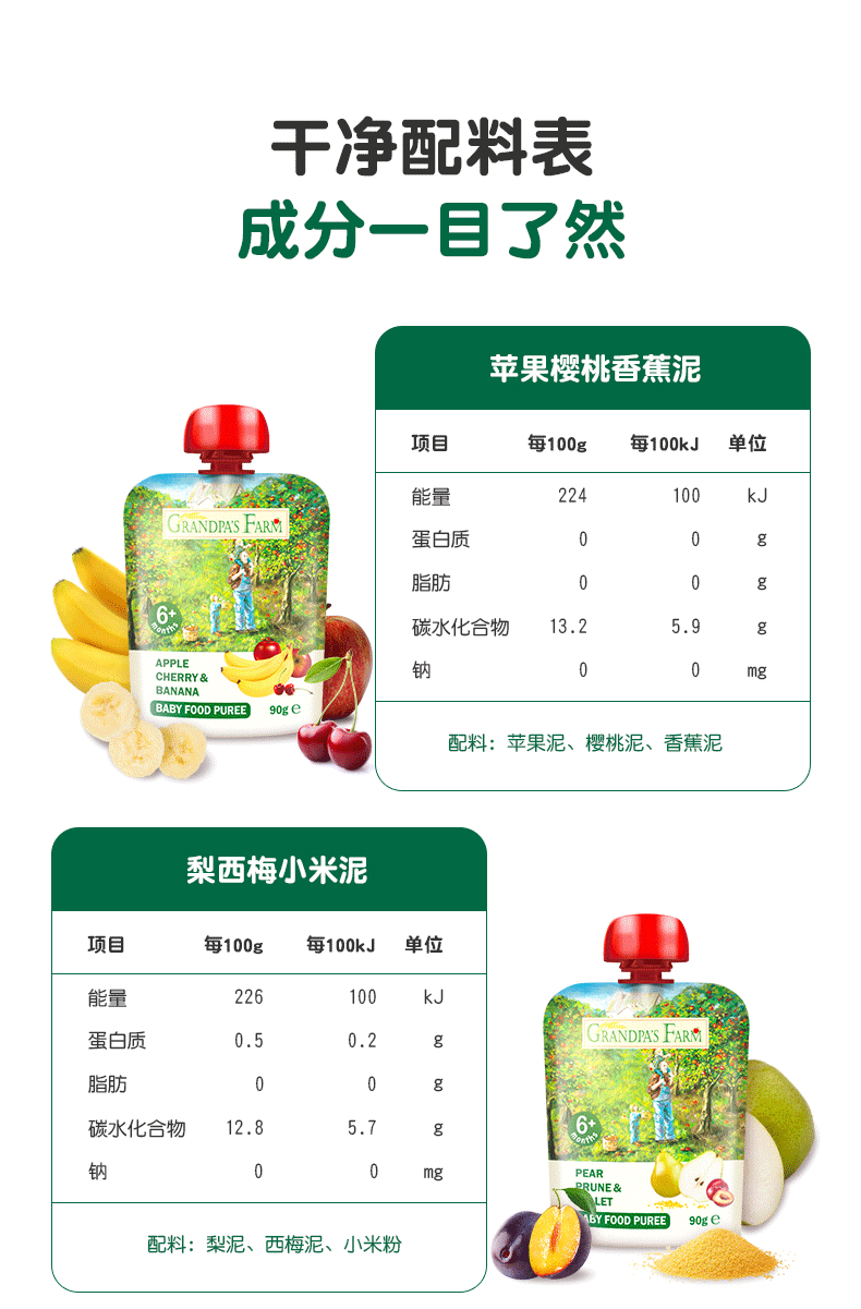 欧洲原装进口,欧盟有机认证,专为6月+宝宝打造,一袋90g,分量刚刚好,满足宝宝一天水果摄入量,酸甜适中,培养宝宝不挑食的好习惯~