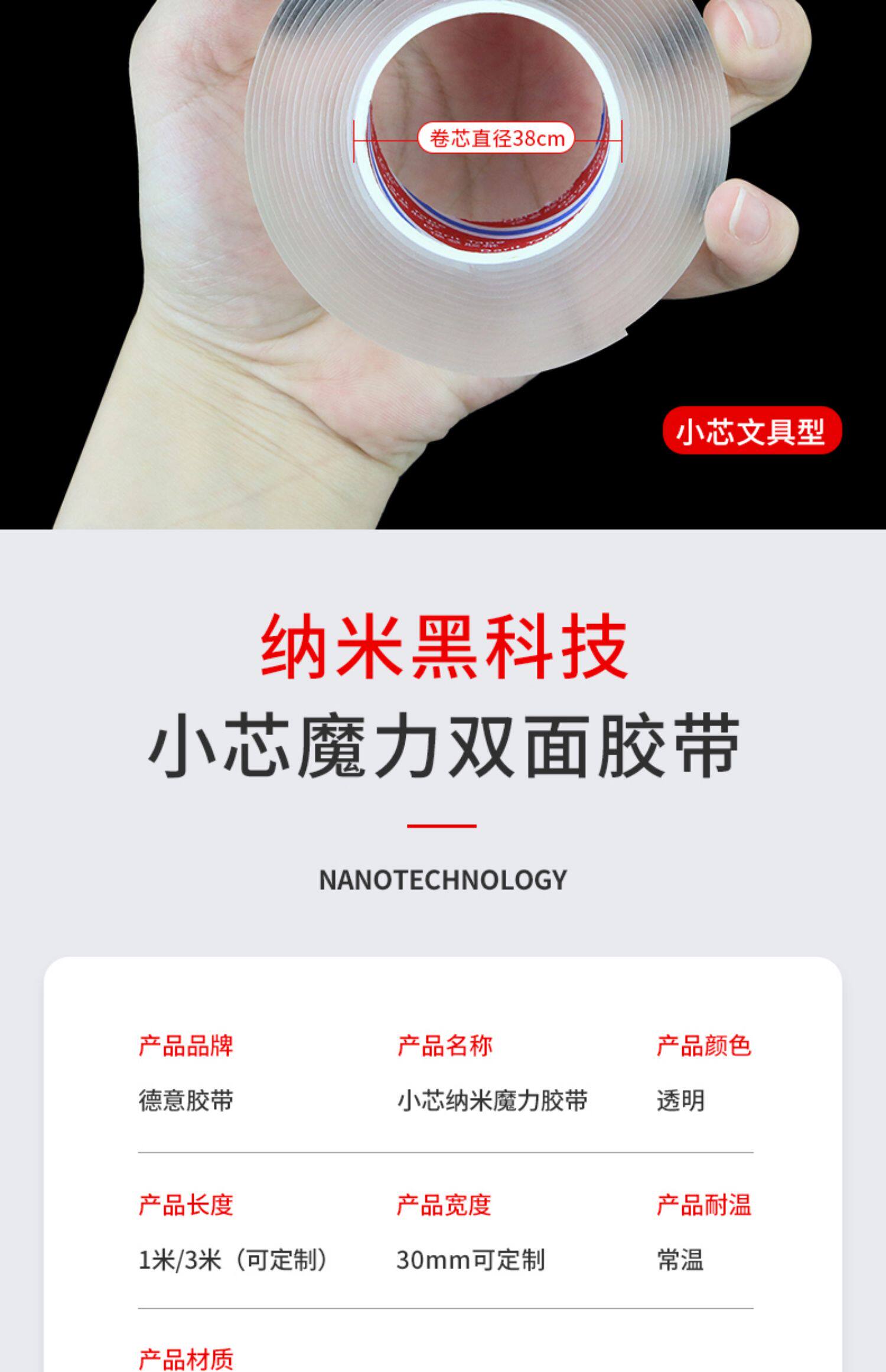 网红同款纳米无痕魔力透明双面胶 抖音爆款,防水防潮,万次纳米双面胶,粘性强,耐高温,超防水,抗拉伸,无残胶,应用范围广,随意粘贴,独立成贴,随用随贴,可水洗万次魔力纳米胶带,居家必备! 2.8 4.8 https://img.alicdn.com/bao/uploaded/O1CN01iU6svh1qg2Tr2nmsL_!!2-item_pic.png 天猫 1004 2