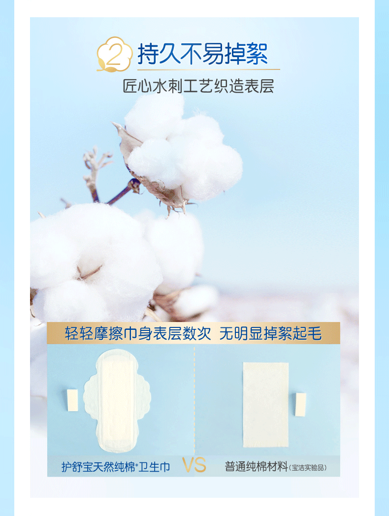 护舒宝纯棉卫生巾,纯净无香型天然纯棉表层,升级透气不闷不热,持久不易掉絮,吸后依然薄~~~ 2