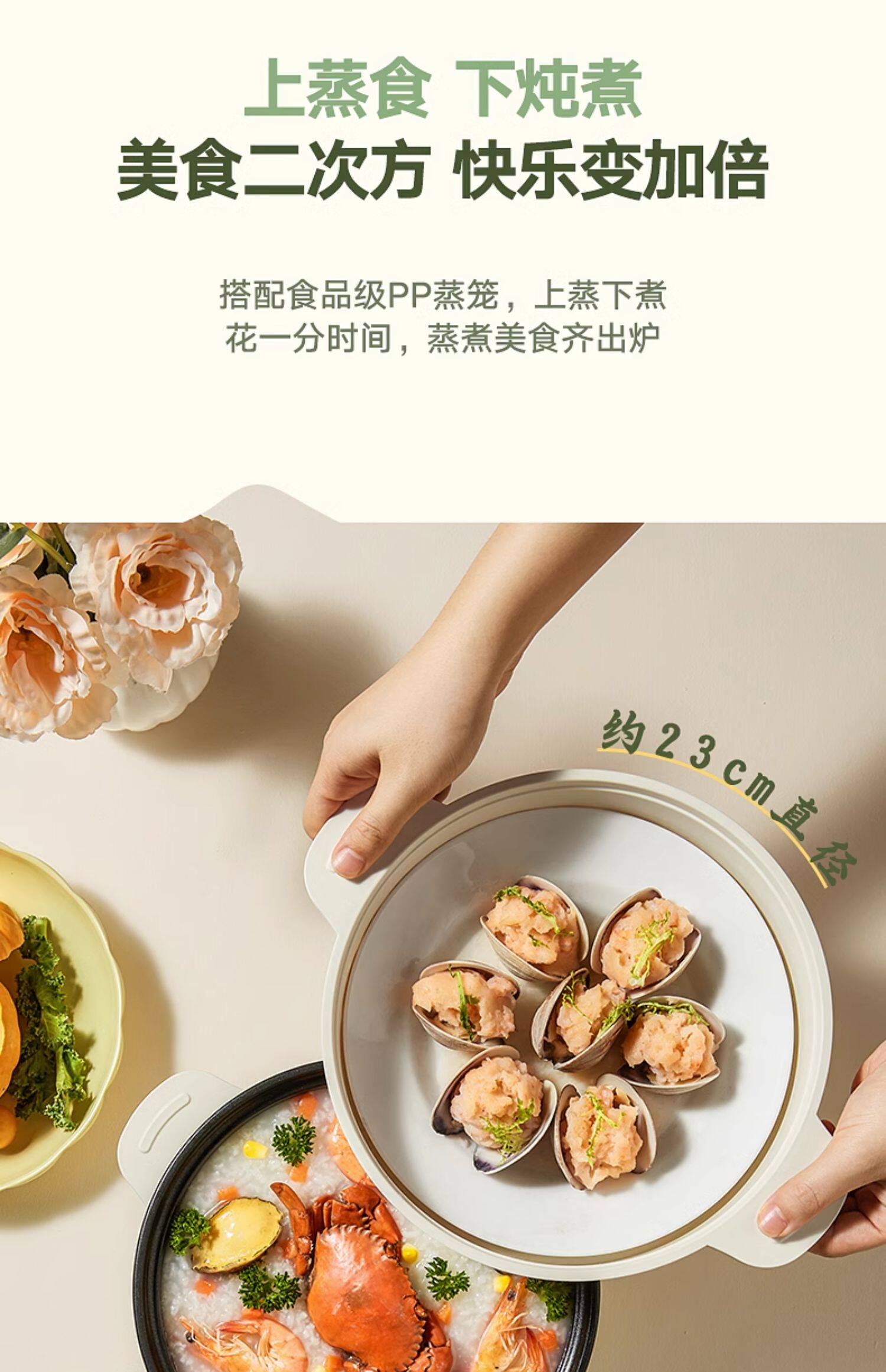 积米2L电火锅多功能锅家用料理蒸煮炒一体