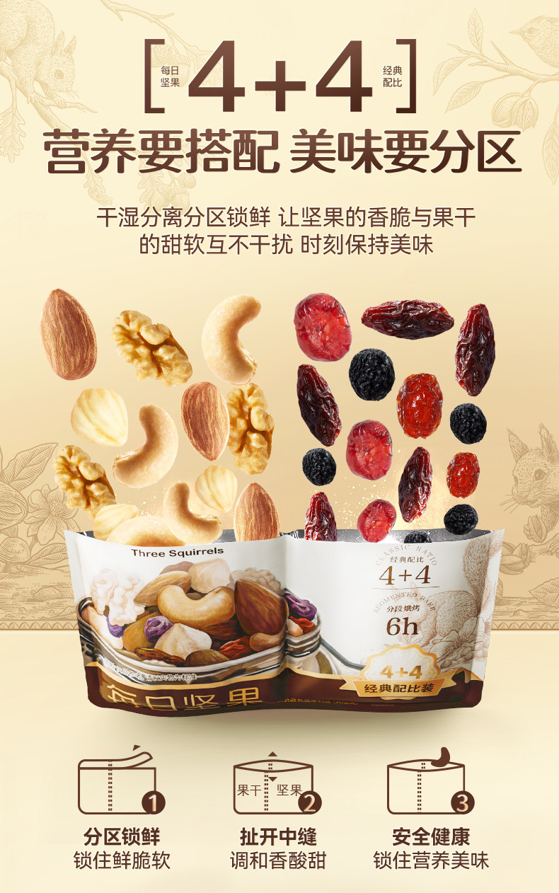【喵晶卡兑换88-6】到手60元,三只松鼠每日坚果活力款750g30天装长辈送礼混合果仁健康孕妇零食,送长辈很合适 3
