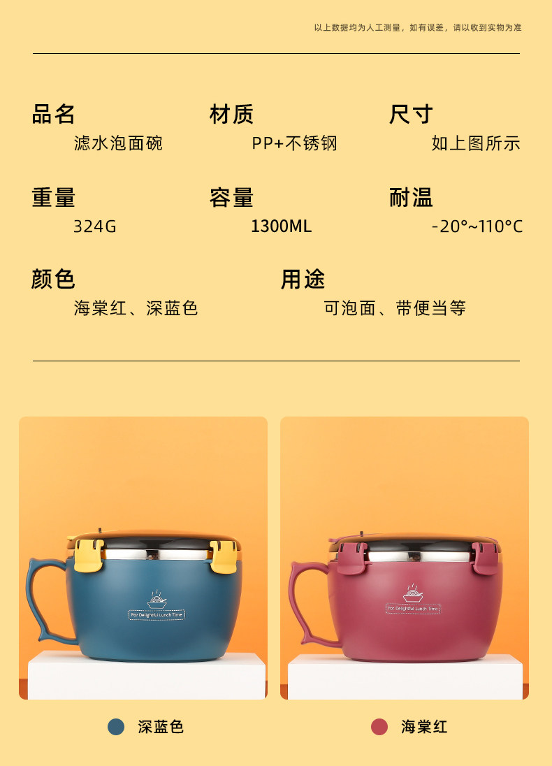 304不锈钢保温饭盒带盖泡面碗 304食品级不锈钢材质,多功能带盖饭碗,中空隔热防烫设计,加上防烫把手,高效保温又免烫!加厚硅胶密封圈,锁住新鲜不漏汤,美味不流失哟~ 14.9 19.9 https://img.alicdn.com/imgextra/i2/2209893690/O1CN01ZZVP1o1d846l73kE1_!!2209893690.jpg 天猫 4352 5