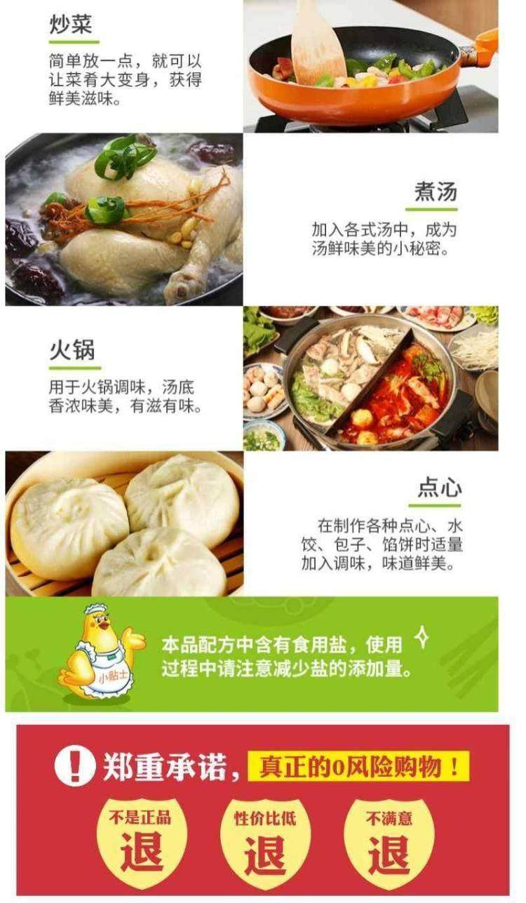 太太乐三鲜鸡精100g*3袋 味精鸡粉 鸡精煲汤,炒菜凉拌厨师专用,色香味齐全,好吃又营养,打开味蕾先从调味开始,饭店专用生意火爆的秘密!小白也能变身饭店大厨水平,入手不亏! 27.4 47.4 https://img.alicdn.com/imgextra/i1/2208582938359/O1CN010BC4vL2BcTLvD5RO3_!!2208582938359.jpg 淘宝 27 20