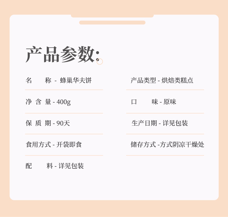 华夫饼面包整箱早餐营养学生蛋糕速食品 察言观色,烘烤至金黄色泽,格格惊喜,口感迷人。闻香品味,醇香四溢,小小一格,融于舌尖格外撩味。细品好味,轻咬一口,绵软,有韧性,不渴不腻 7.9 9.9 https://img.alicdn.com/imgextra/i3/2207787293676/O1CN012KjQbk1d1eZXiSpg1_!!2207787293676.jpg 天猫 377 2