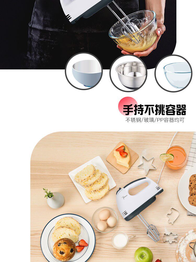 家用电动打蛋器小型搅拌机烘焙工具全套 一机多用,打面糊、打奶油、打蛋、搅拌都可以,七档调速高效打发,轻松烘焙,享受生活,烘焙利器 38.8 58.8 https://img.alicdn.com/imgextra/i3/2208395199325/O1CN01LITZ1H2IktxjoUrQe_!!2208395199325.jpg 淘宝 50014 20