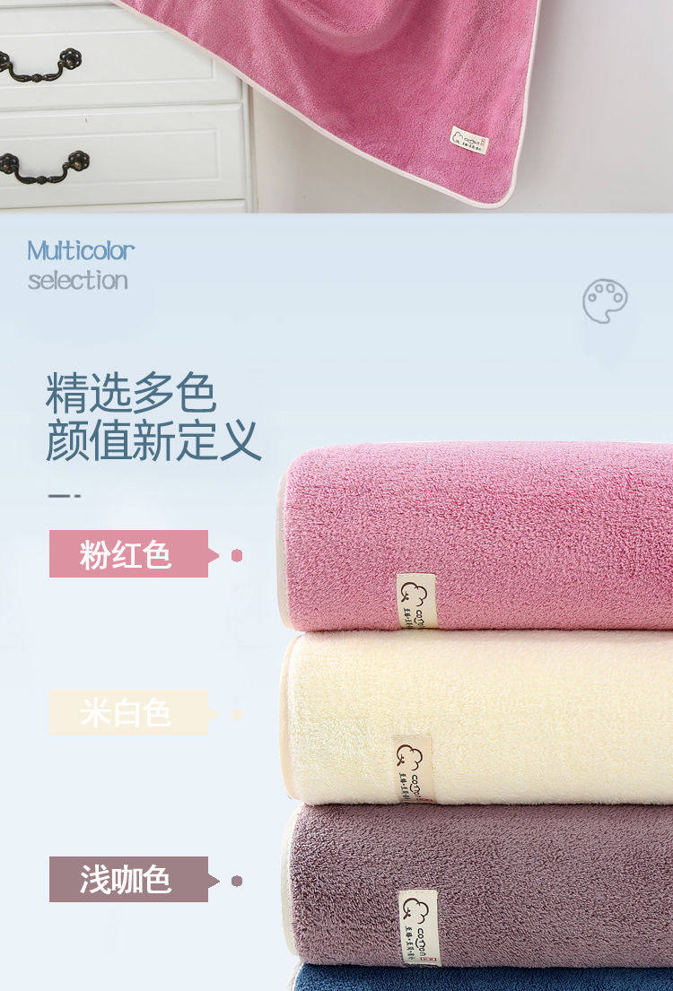 可爱浴巾女吸水珊瑚绒毛巾裹胸套装 纯色珊瑚绒速干大浴巾,质地超柔软的,吸水性特别好,不掉毛不掉色,质量超级好!当浴巾,擦头发、擦身子、包头发、当毛毯都超棒! 26.9 76.9 https://img.alicdn.com/imgextra/i2/1678395213/O1CN01L25tk61oNbInA3i7B_!!1678395213.jpg 淘宝 11007 50