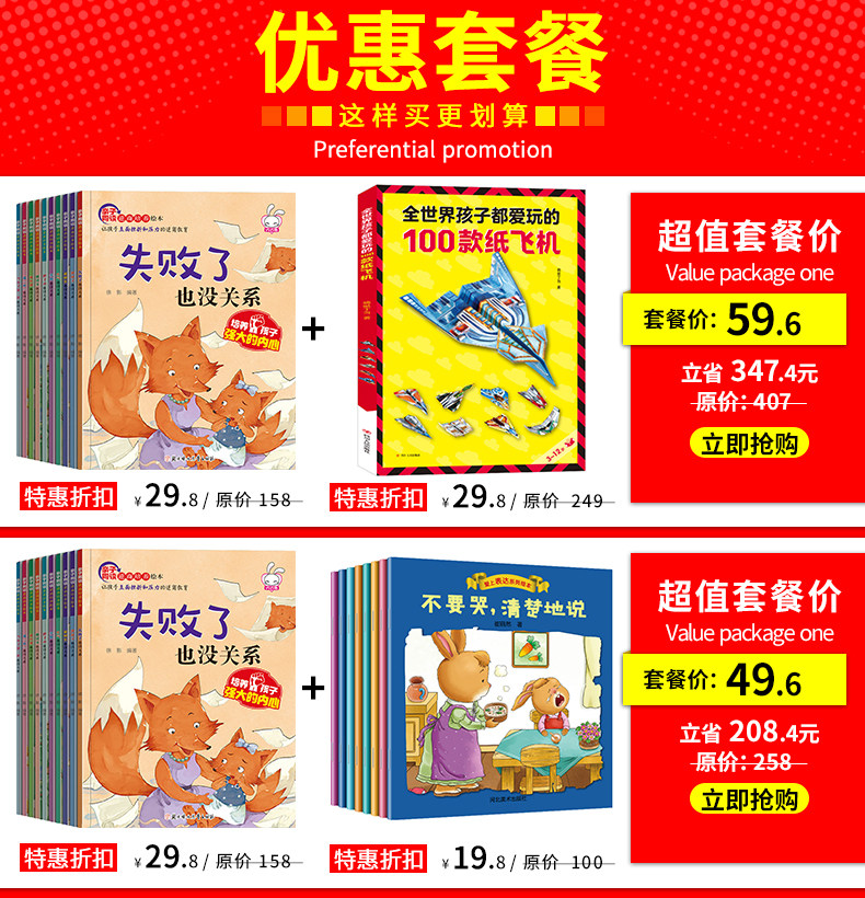 全套10册失败了也没关系儿童逆商培养绘本 失败了也没关系儿童逆商培养绘本,有声伴读,抖音同款,亲子同读,培养孩子强大的内心,可爱的动物形象,增加阅读兴趣,让孩子们直面挫折和失败的逆商教育! 19.8 29.8 https://img.alicdn.com/imgextra/i4/1638268570/O1CN013YQevA2DB6vZMDzOE_!!1638268570.jpg 天猫 1370 10