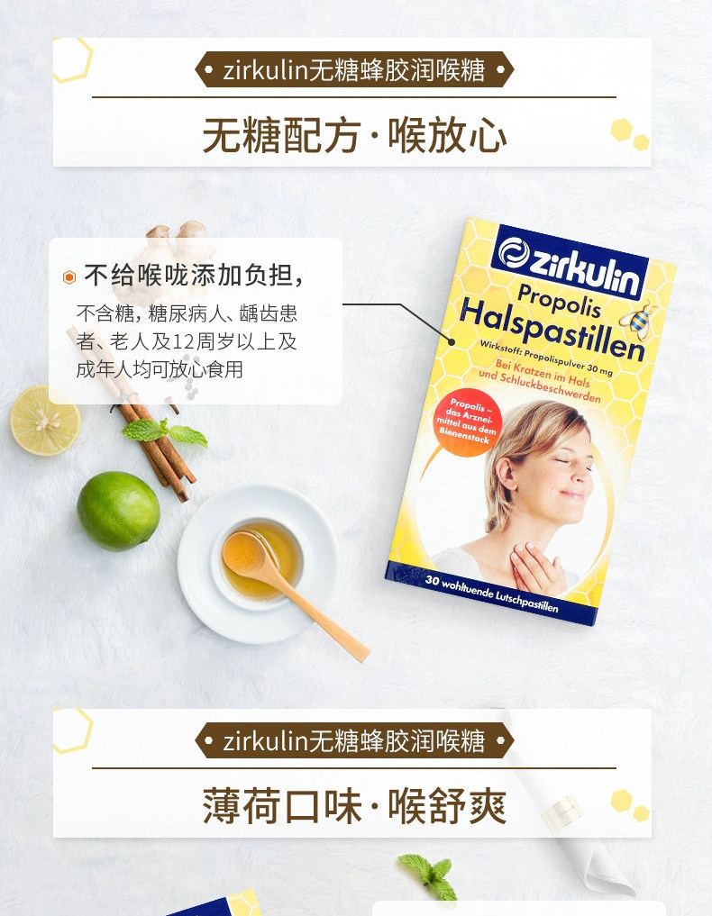 无糖蜂胶润喉糖薄荷30片*2盒 【下单立减10元】爆款推荐,效果惊人,回购率高。无糖清凉薄荷糖,有效缓解咽喉不适,对抗口腔溃疡!欧洲百年蜂胶品牌,超值30片*2盒,速抢!