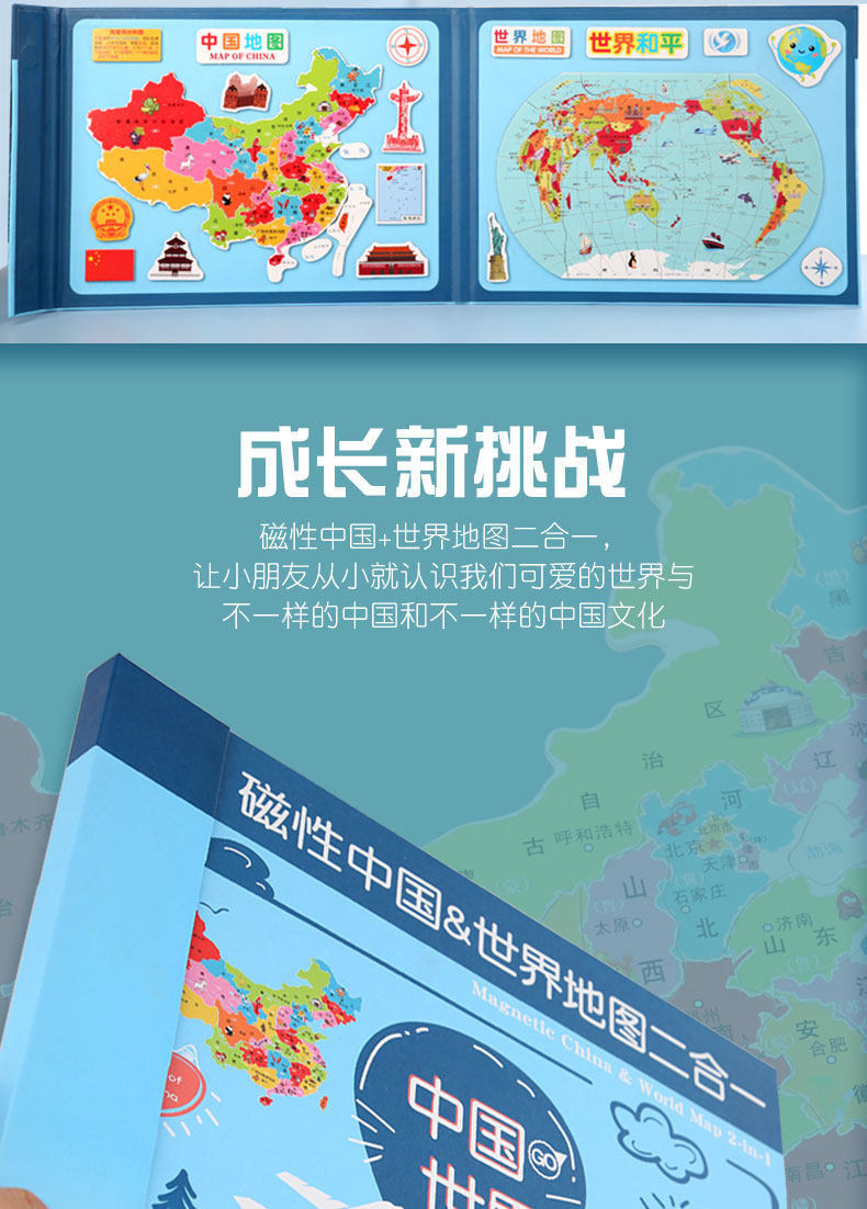磁性中国地图拼图儿童益智玩具 【益智早教磁性中国+世界地图二合一拼图】磁性地图带你知中国,游世界,成长新挑战,小学生地理认知,好玩好拼好学好记!有趣有料,尽情去发现!【赠运费险】 22.8 25.8 https://img.alicdn.com/imgextra/i2/775320520/O1CN01ipiAQe1FiCazuvo1t_!!775320520.jpg 天猫 23 3