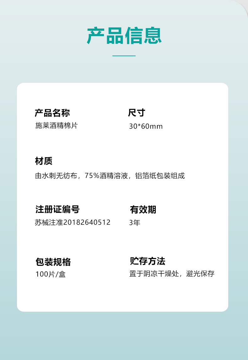 【共100片】施莱医用75%酒精消毒棉片 【共100片】一次性酒精棉片,75度酒精消毒棉片,纺布材质单片包装,多种用途,携带方便,户外好帮手,居家外出,必备单品。 6.9 9.9 https://img.alicdn.com/imgextra/i1/2775672729/O1CN01nVwIap1W1vUa2alVW_!!2775672729.png 天猫 144 3