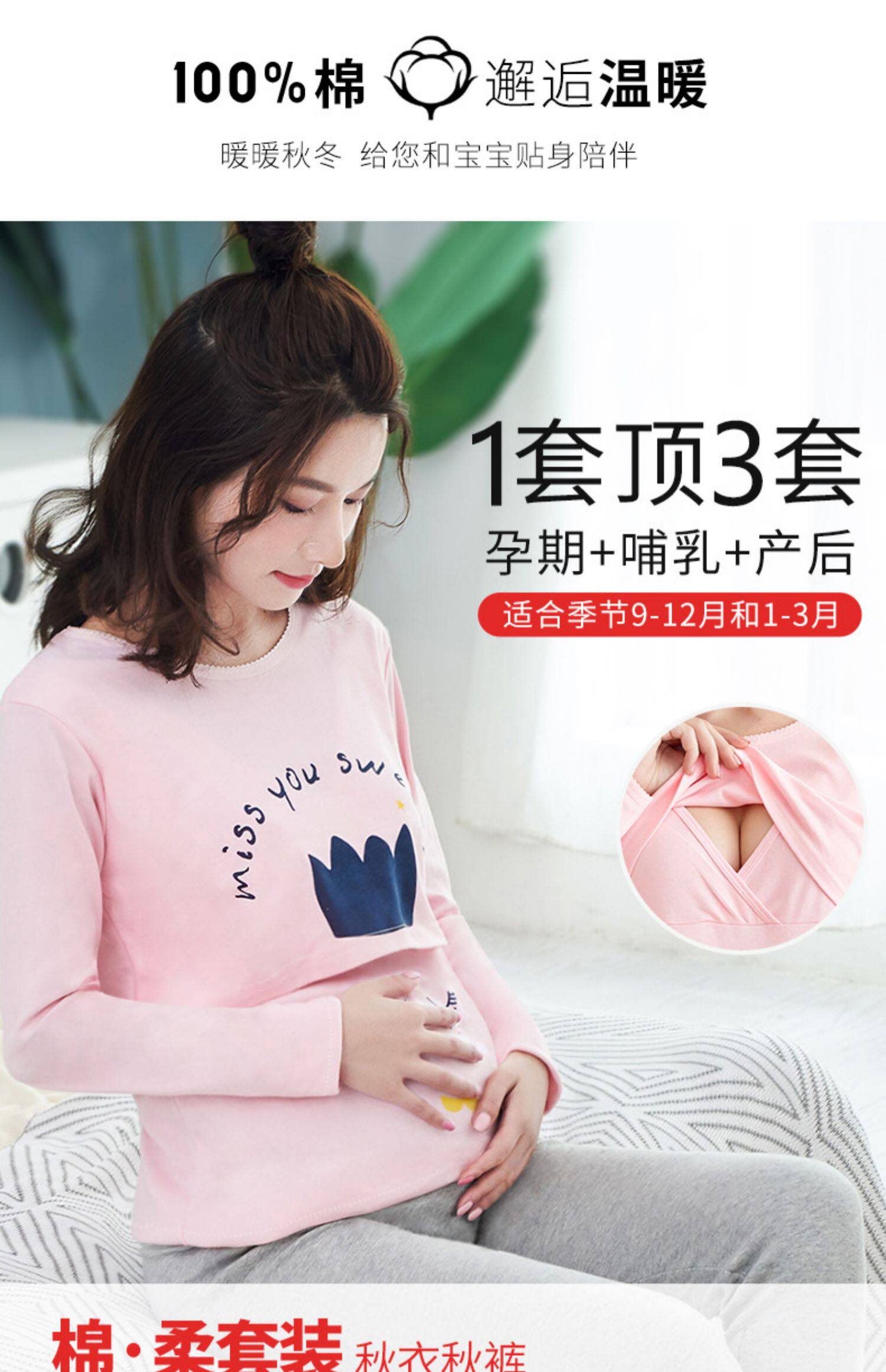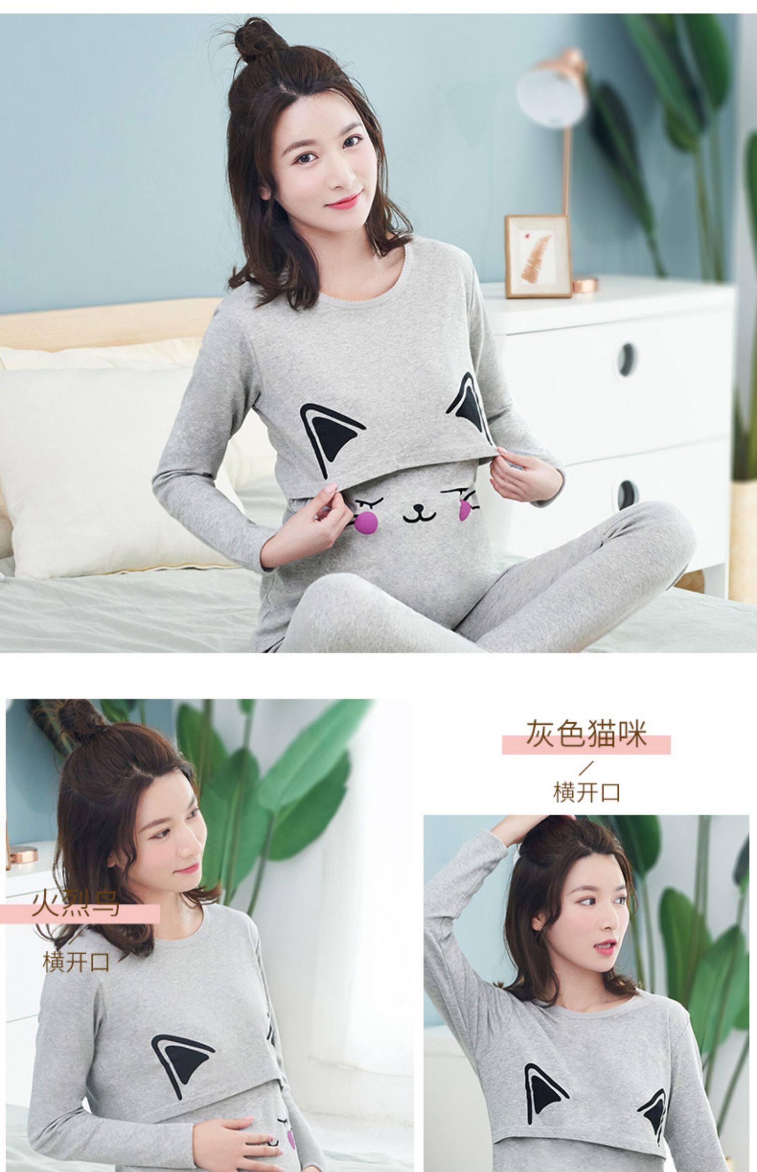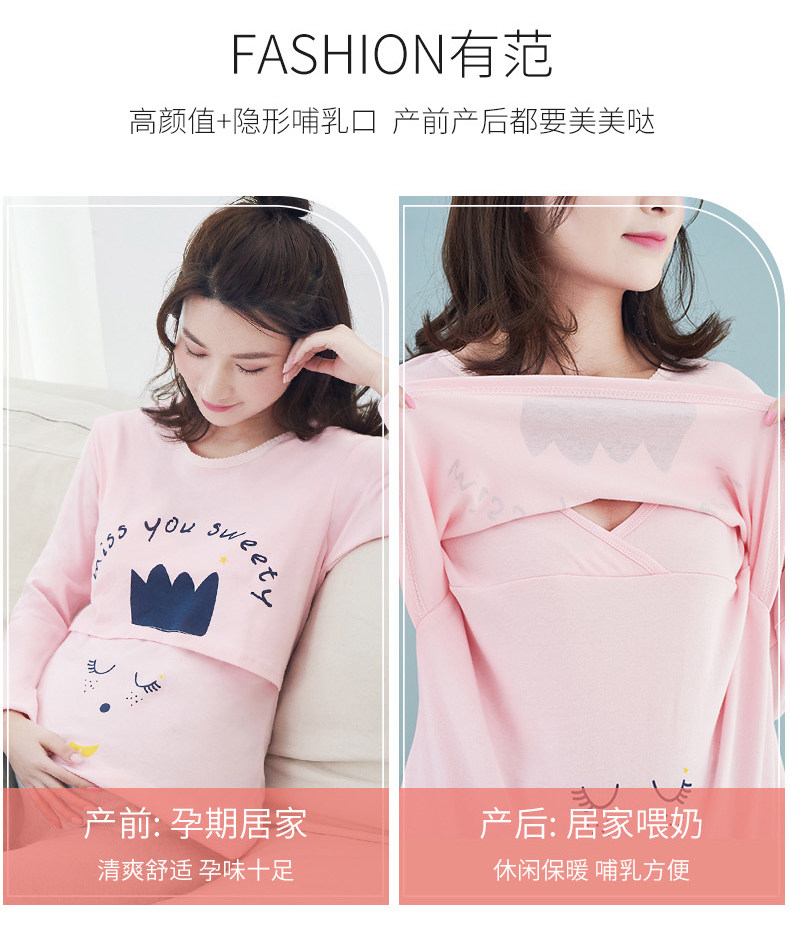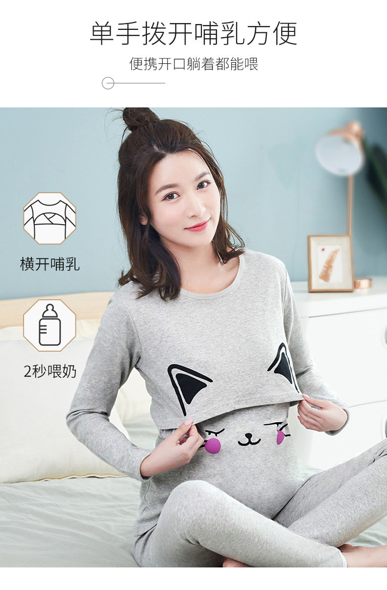 孕妇秋衣秋裤套装纯棉毛衫哺乳睡衣 孕妇纯棉秋衣秋裤套装产后哺乳睡衣秋冬季月子服喂奶怀孕期棉毛衫,产前产后睡眠兼用,柔软舒适