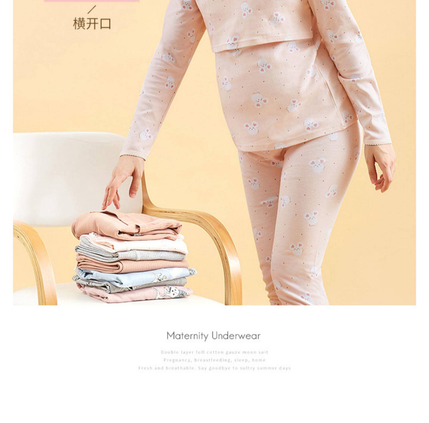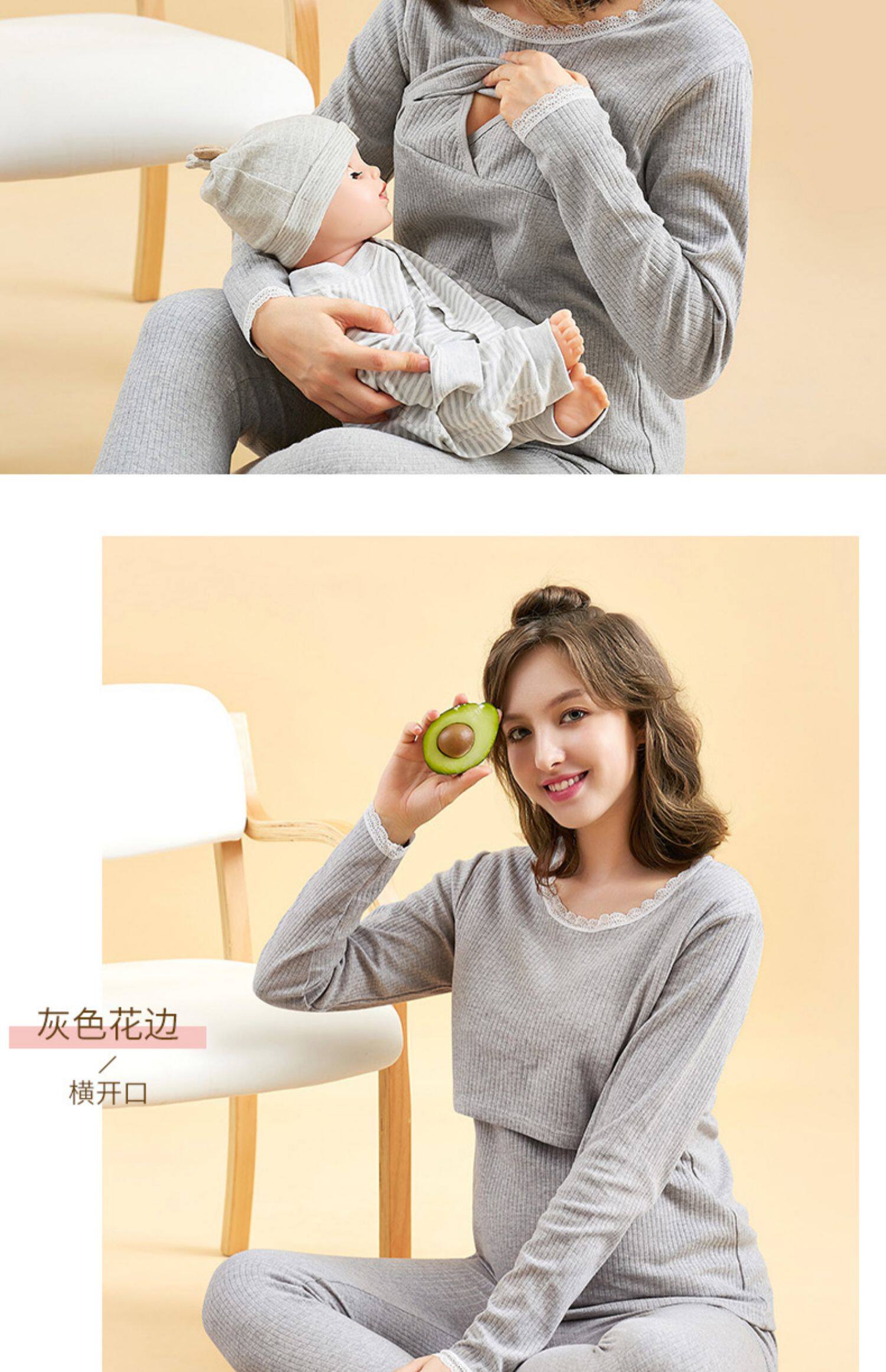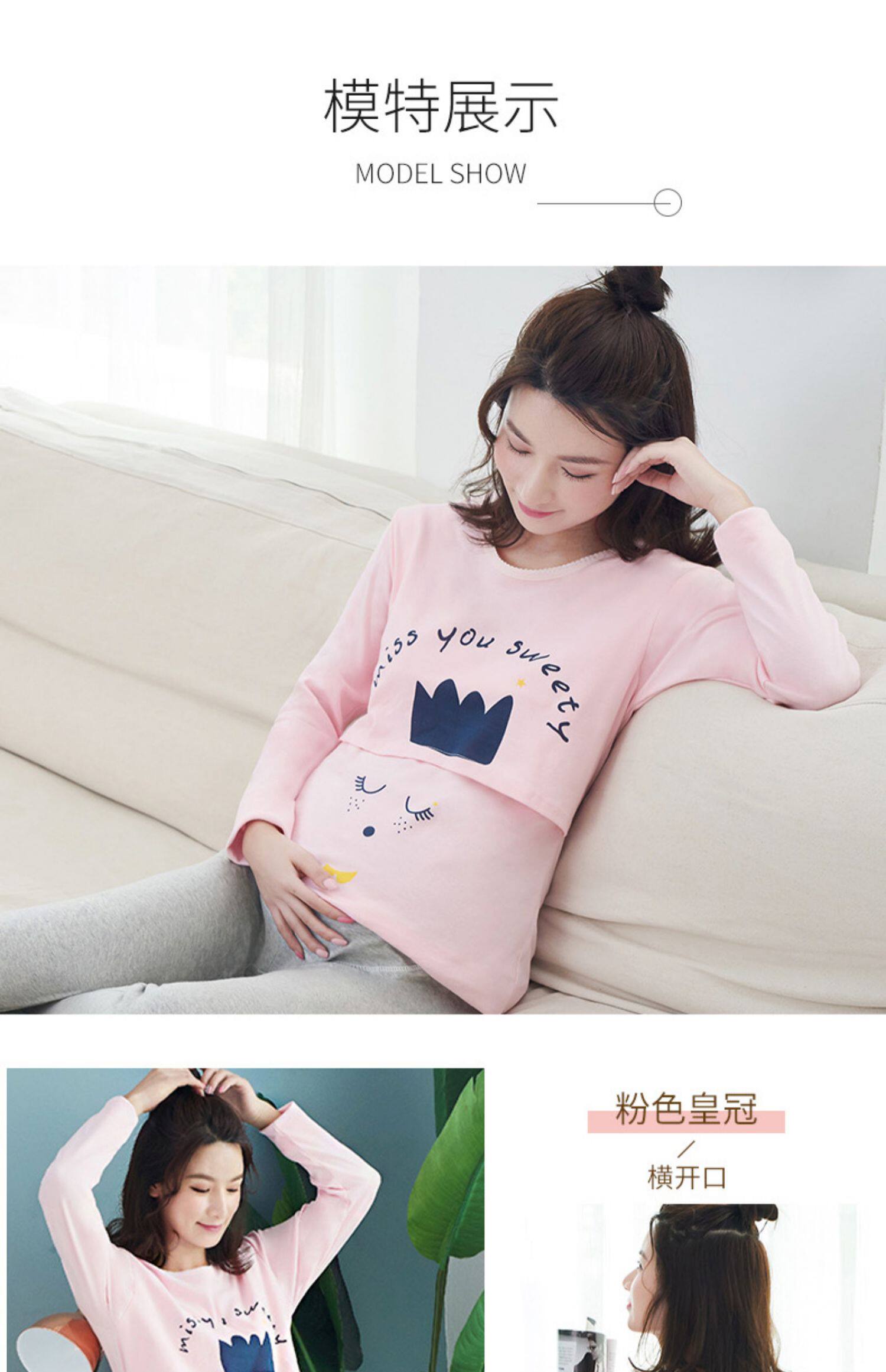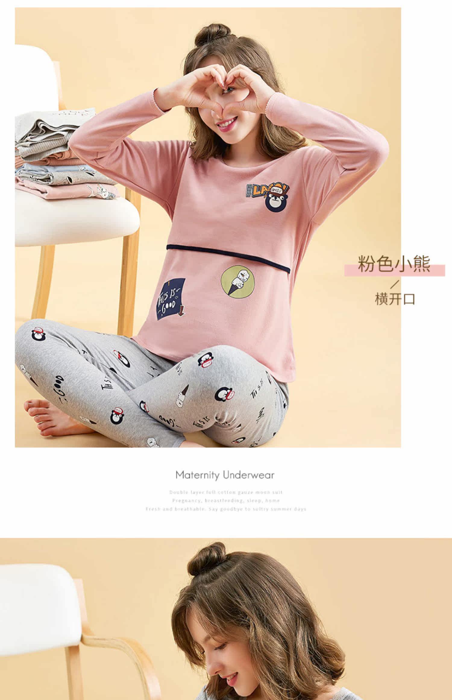 孕妇秋衣秋裤套装纯棉毛衫哺乳睡衣 孕妇纯棉秋衣秋裤套装产后哺乳睡衣秋冬季月子服喂奶怀孕期棉毛衫,产前产后睡眠兼用,柔软舒适
