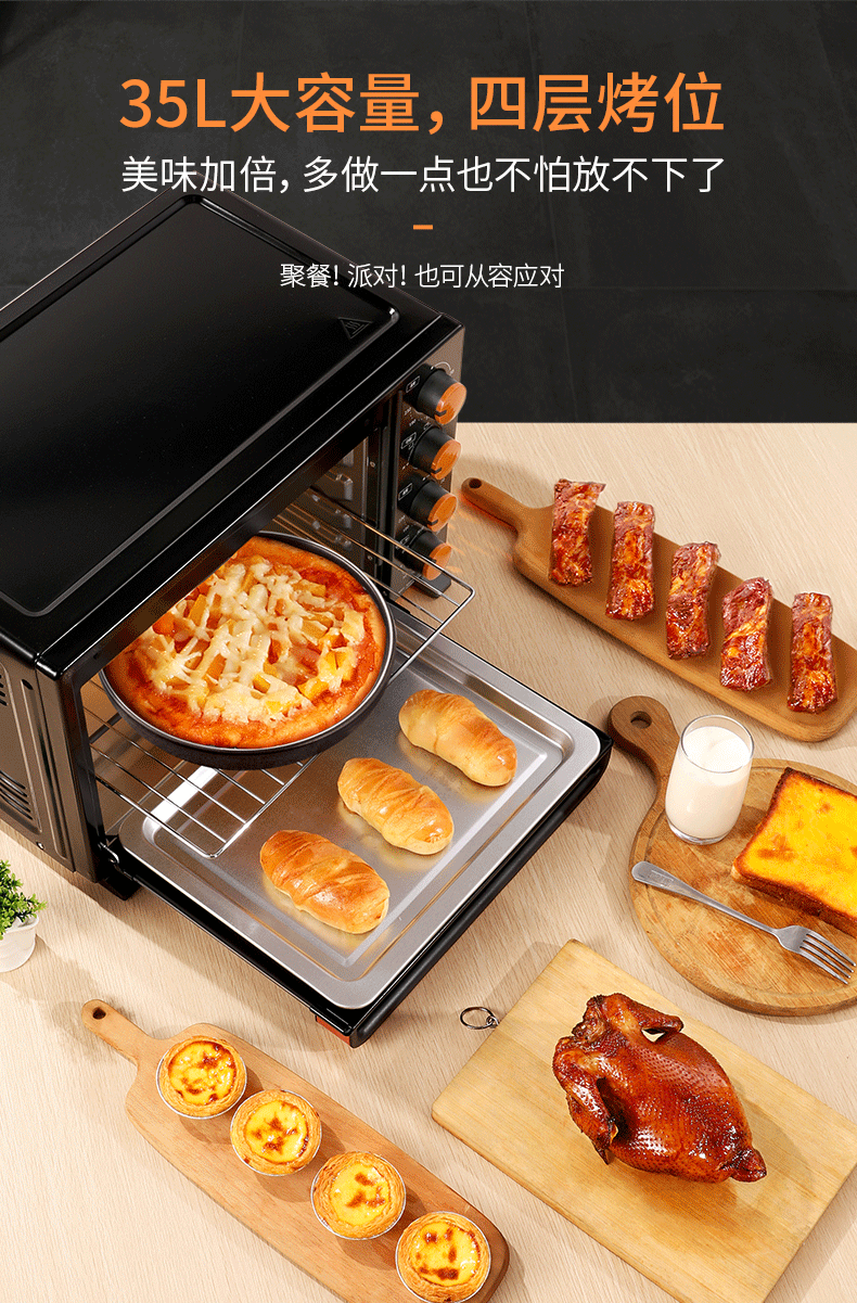 【美的】35L全自动多功能电烤箱 美的35L超大容量智能电烤箱,4层烤位,上下管独立控温,12大智能菜单,一键烘焙!优质不锈钢外壳,防爆钢化玻璃门,3D热风循环,家用烘焙必备【赠运费险】【七天无理由退换】