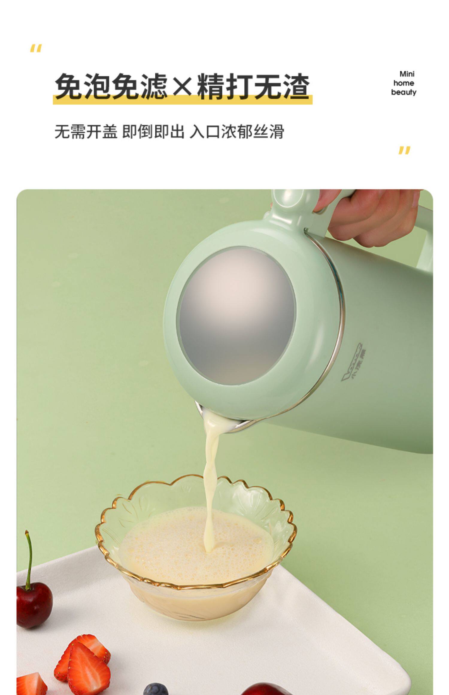 小浣熊迷你豆浆机全自动破壁机免煮 迷你小巧豆浆机,功能强大!300ML容量,一键轻松磨粉,自动加热,15分钟快速制浆!浓郁无渣,细腻丝滑,破壁免滤直接喝!豆浆、果汁、辅食、代餐样样都能搞定!【赠运险费】