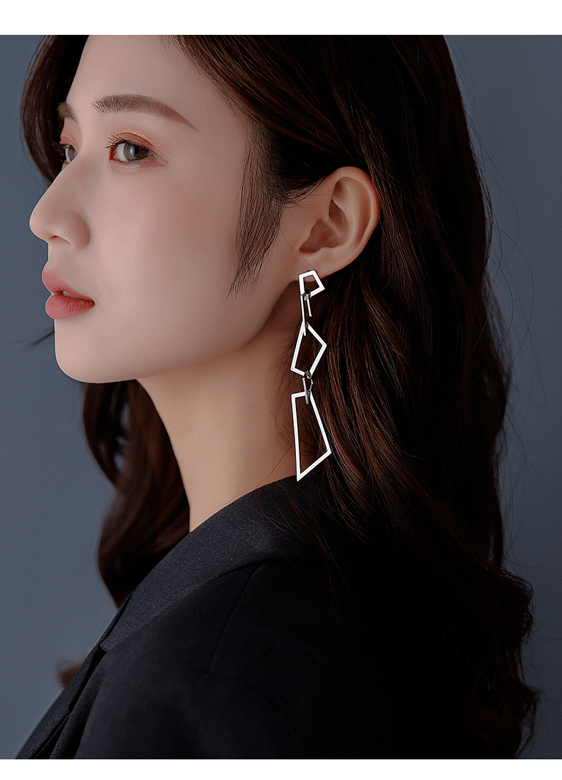 纯银针几何菱形链条长款气质耳坠 【券全店可用】【925纯银针】精细做工,不规则形状设计,镜面抛光长款耳环修饰脸型,佩戴舒适,品质与艺术,折射出迷人璀璨之光,采用s925银材质,不易过敏,不易氧化。