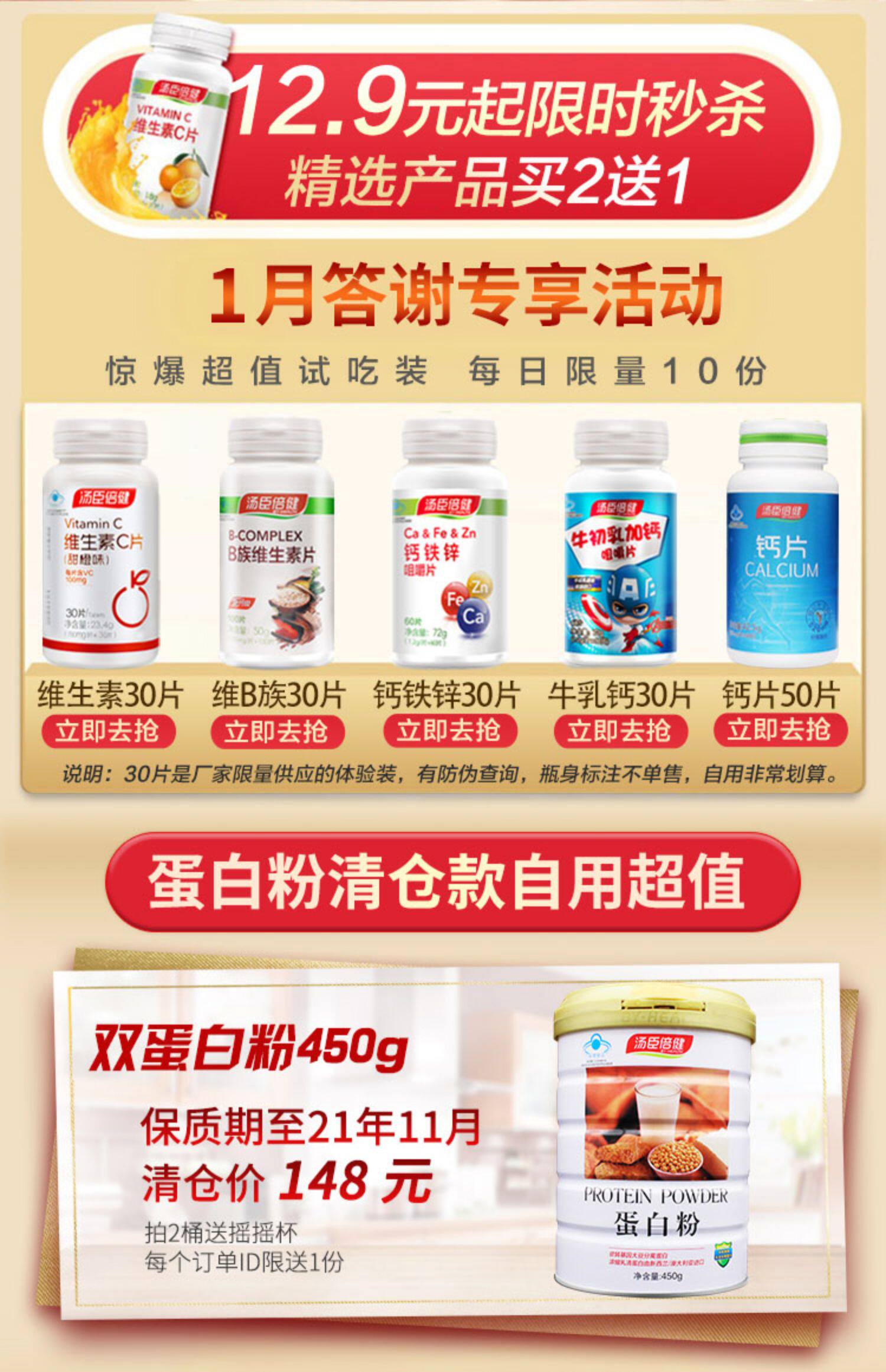汤臣倍健vc咀嚼片120片*2瓶 酸酸甜甜口感,每天来2粒!长效抗氧化,增强免疫力,美容养颜效果非常棒,爱美的小姐姐快抢! 77 87 https://img.alicdn.com/imgextra/i4/2672045966/O1CN017oXfhh1twTYyD9rLT_!!2672045966.jpg 天猫 979 10