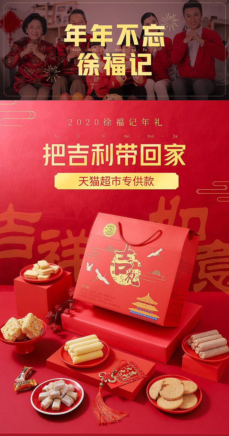 徐福记 糖果糕点年货吉利礼盒1406g装 【下单立减30元+6元券,单件到手仅63.9元!】徐福记大吉大利礼盒1406g!猫超定制版,内含8袋不同小零食,超值分量十足,款款好吃又经典~分量十足!过年买徐福记把吉利带回家!次日送达~