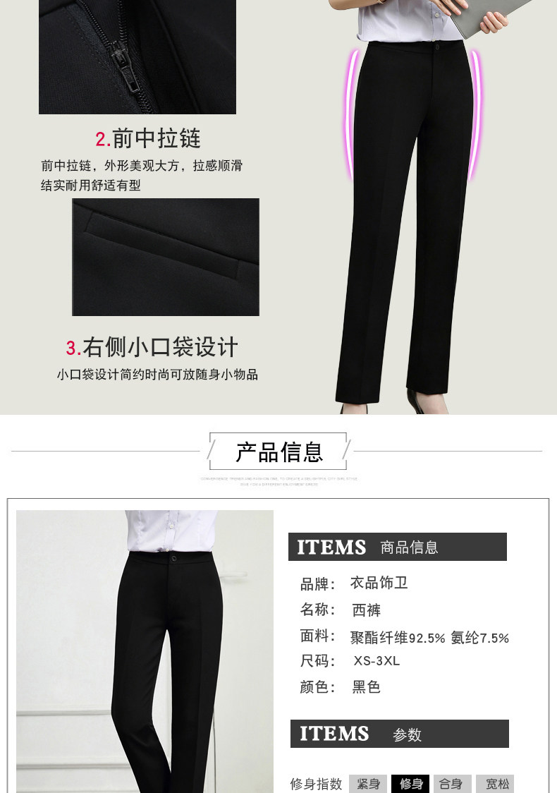 职业装西裤西装裤正装裤黑色裤子 明朗利落的版型,简约利落的设计,显瘦提臀,立体裁剪,弹力舒适,抗皱,免烫,防污,防静电,质量保证。 66 69 https://img.alicdn.com/imgextra/i3/2214972003/TB2jXHRbB4lpuFjy1zjXXcAKpXa_!!2214972003.jpg 天猫 60 3