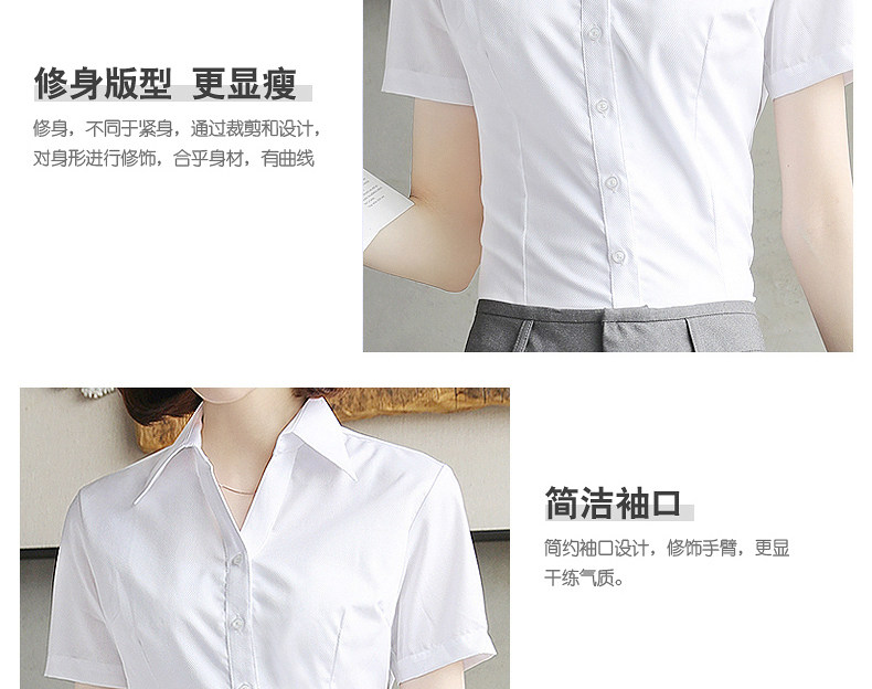 夏季职业衬衫女士V领短袖衬衫商务正装 【此卷全店通用】优选优质面料,深V翻领,立体剪裁,修身显瘦,不挑年龄,时尚百搭,暗扣防走光,尽显女性白皙脖颈,气质优雅,职场上的女神!