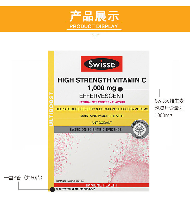 【Swisse】高浓度VC泡腾片60片 【2件8折凑单后127.2两盒,一盒到手63.6元】澳洲进口,高浓度VC泡腾片,泡出来的营养健康,补充人体所需的维生素,促进伤口愈合,促进铁的吸收,改善贫血,每天一杯,随时随地恢复满满的正能量!
