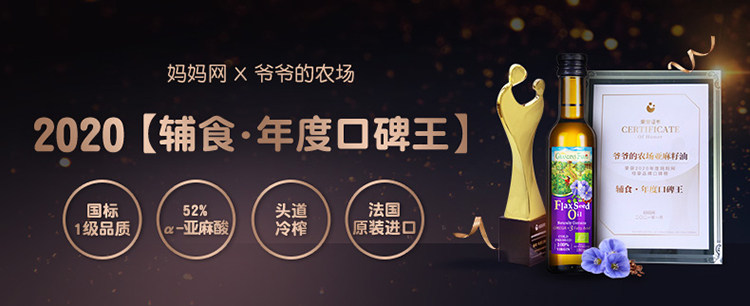 超值!爷爷的农场亚麻籽油250ml装 【爆款新低!爷爷的农场亚麻籽油250ml装仅需89元!】【领取88-5元品类劵/ADM4cJoIWcv/更优惠】猫超大牌爷爷的农场!天猫超市次日达!妈妈放心的有机好油,营养健康,呵护宝宝健康成长! 89 99 https://img.alicdn.com/imgextra/i1/725677994/O1CN01V76bav28vIltyW5VM_!!725677994.jpg 天猫 3456 10