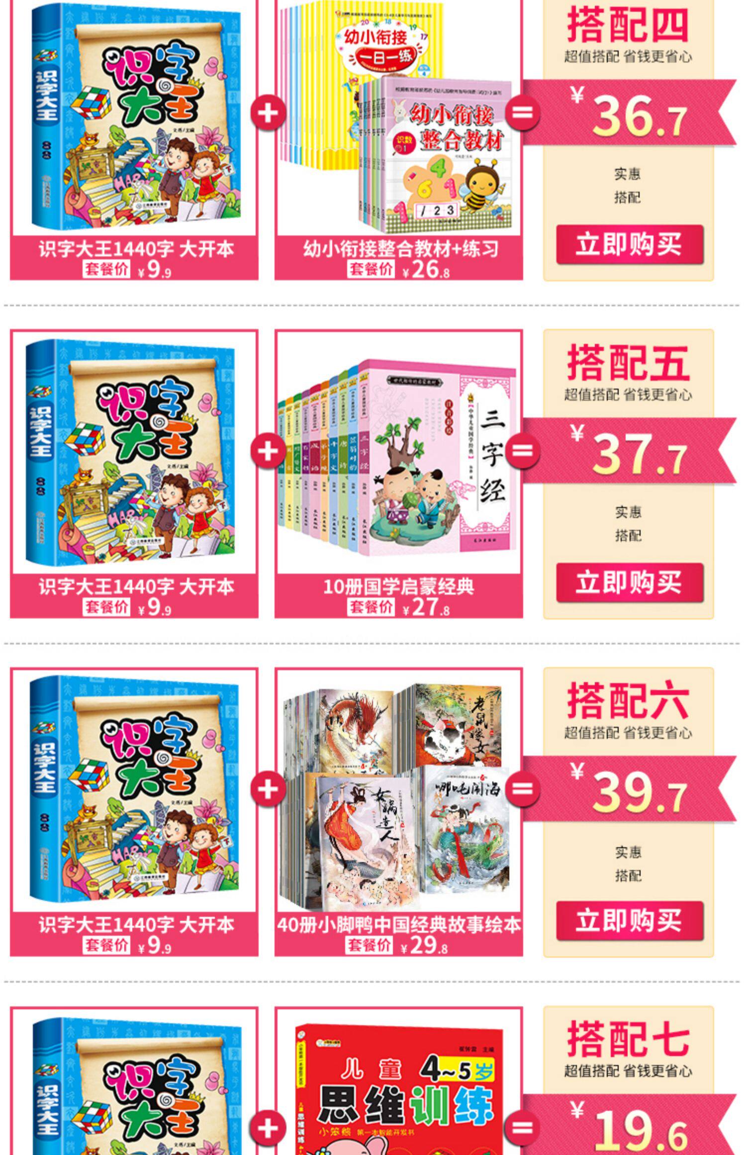 拼音版3-7岁儿童学前认字书籍 【1440字看图识字大王】适合3岁以上宝宝,看图识物识字,加厚卡纸圆角设计更安全!高清环保印刷,边玩边学,宝妈必备儿童启蒙卡片! 8.8 9.8 https://img.alicdn.com/imgextra/i2/2102560219/O1CN01YK5Egu1DULKf8nu6u_!!2102560219.jpg 天猫 25341 1