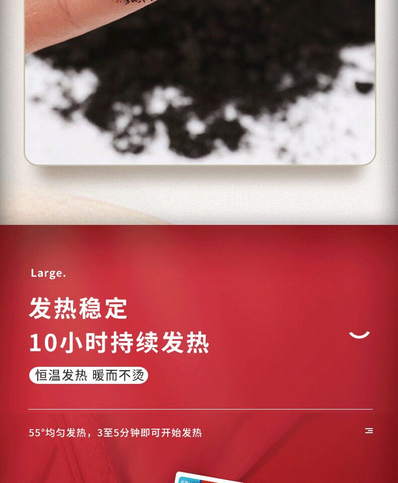 【20片】乾越暖贴 自发热暖宝宝 【天气冷了多屯点!多买多优惠!一片才3毛多!】采用4层无纺布发热持久,安全透气,3分钟迅速升温,持久发热10小时,全身通用,不漏袋,粘性强,不脱落,做贴心的“暖男”,从此让你告别寒冷! 7.9 10.9 https://img.alicdn.com/imgextra/i3/2640273581/O1CN01jCKj2Z1cK8x4gk2G7_!!2640273581.jpg 天猫 1613 3