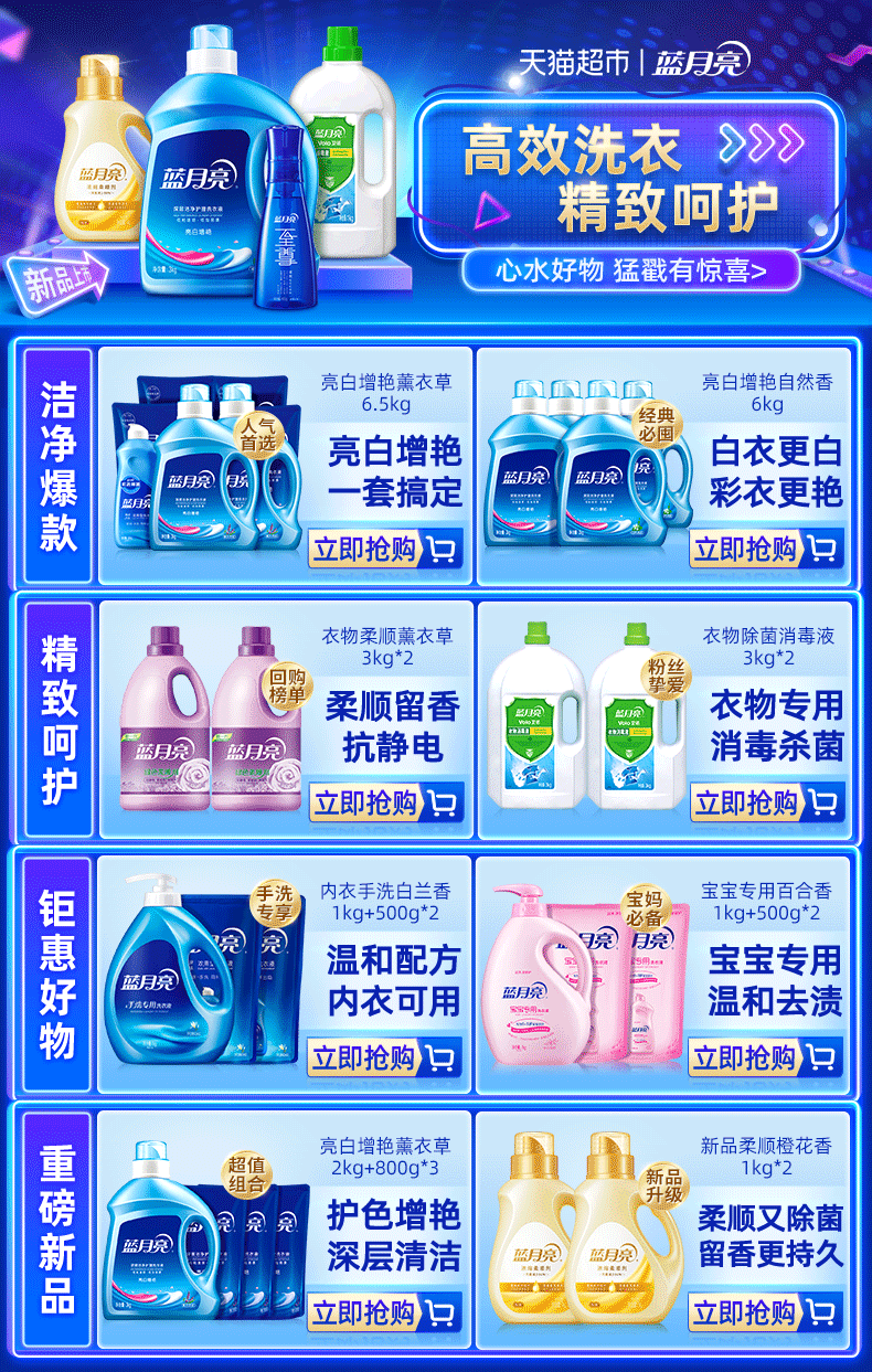 【天猫超市】蓝月亮机洗洗衣液4件套 【天猫超市】机高效洗净洗衣液超值4件套4.72斤,洗衣液,一泵可洗8件,用量更省去污更强!独特泡沫控制技术,低泡易漂,洗涤更节水!