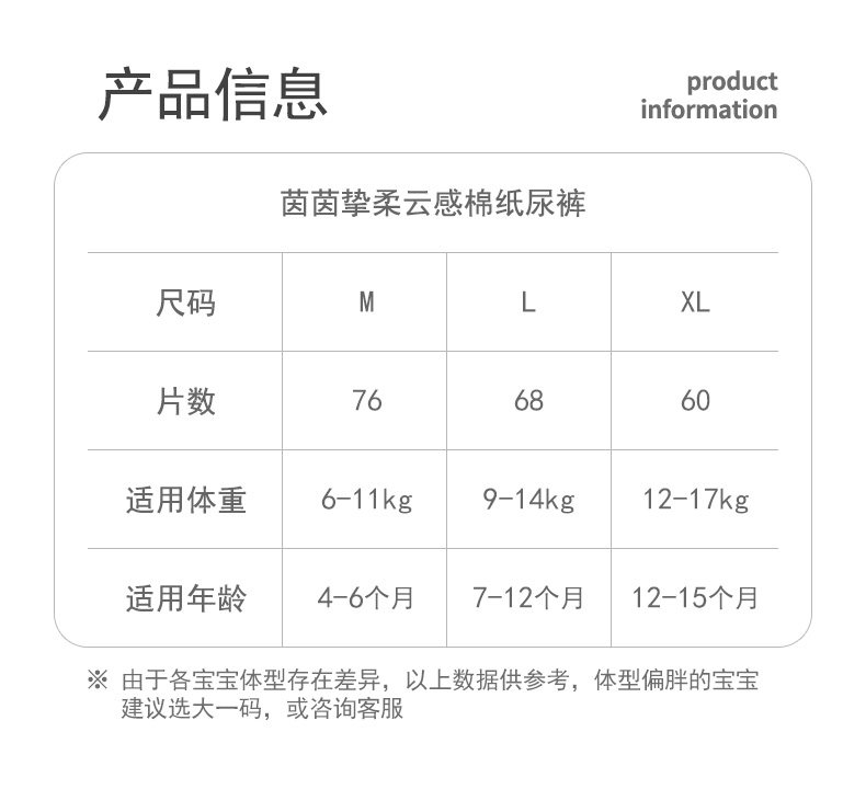 茵茵挚柔云感棉纸尿裤L136片 【拍2件,第二件0元,2件79,平均39.5一件。单件65折】超薄透气柔软,持久干爽,不起坨,不伤皮肤,拒绝红屁屁,宝妈必备选择! 79 99 https://img.alicdn.com/imgextra/i3/43574553/O1CN01dVM9qm1jVJwiKNFlF_!!43574553.jpg 天猫 2430 20