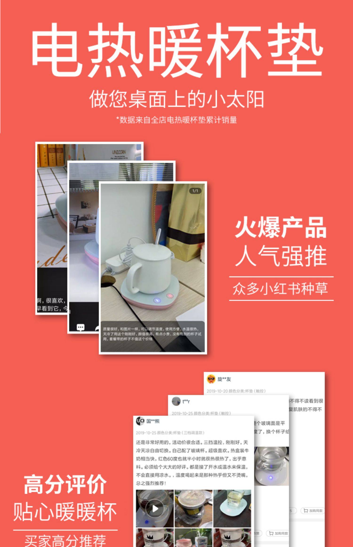 【暖暖杯】55℃度加热保暖杯垫 【暖暖杯】为爱恒温保温,加厚0.3mm耐高温玻璃面板,自动加热断电,防水易清洗,安全省心,高颜值养生杯,暖暖的,很贴心,送你一杯子,暖你一辈子【赠送运费险,保修1年】 14.9 19.9 https://img.alicdn.com/imgextra/i4/3320120202/O1CN01GiO0M71DMYcxU5RO5_!!3320120202.jpg 天猫 6916 5