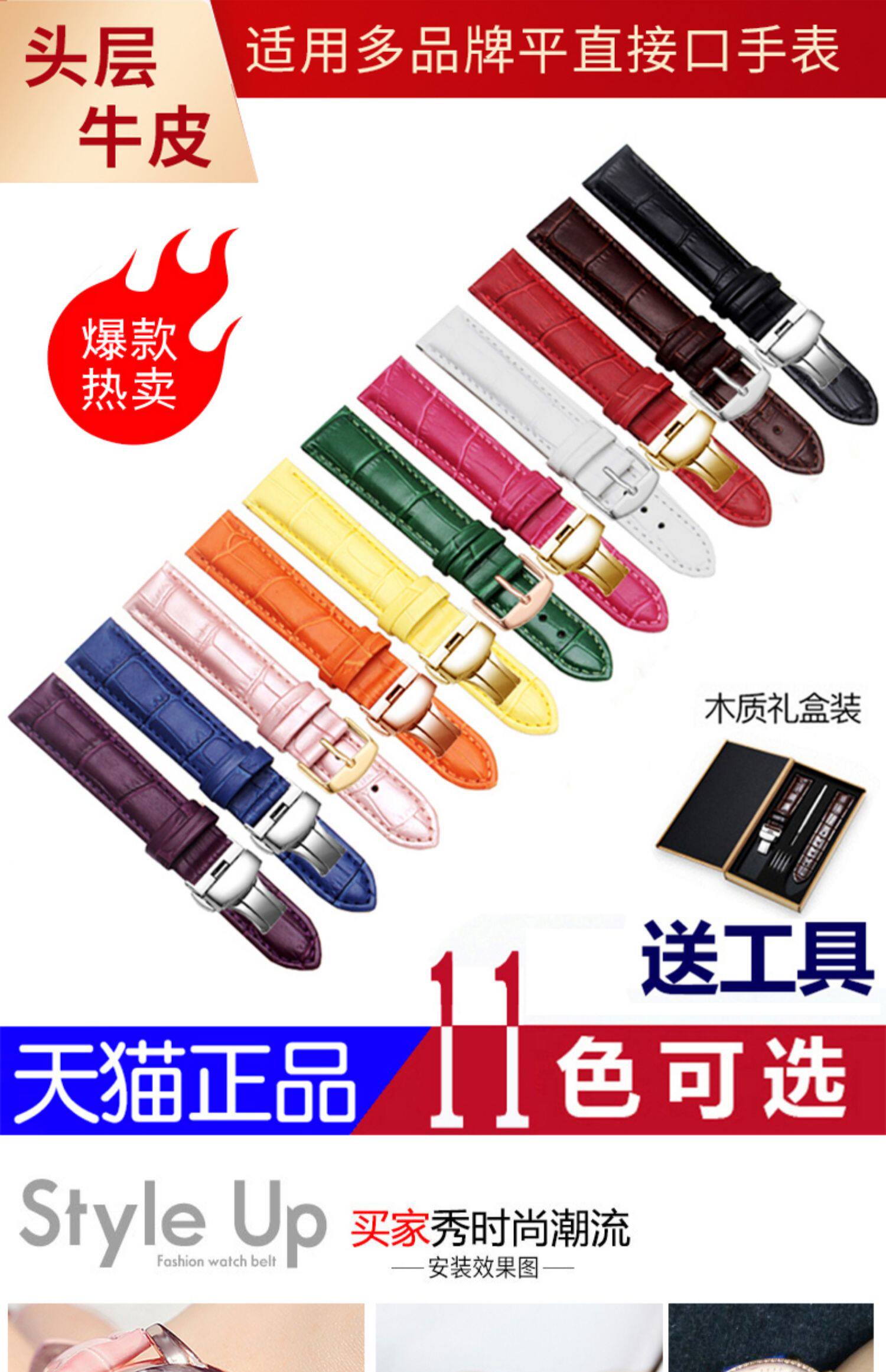 真皮手表带男女适配芙丽卡西欧飞亚达表链 (头层小牛皮+柔软舒适+送工具)真皮手表带女,适配芙丽表带,通用腕带蝴蝶针扣配件男。【赠运费险】 29.9 39.9 https://img.alicdn.com/imgextra/i2/3335768294/O1CN013yBuX72B8hZD7mycp_!!3335768294.jpg 天猫 400 10
