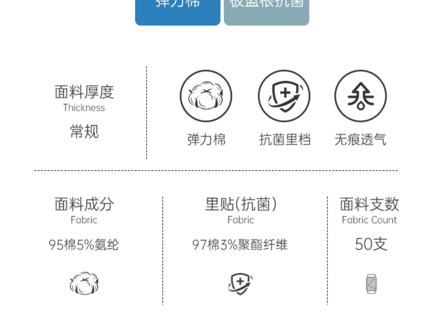 精选柔软亲肤面料,面料是基础好面料成就好内裤!!采用优质橡筋耐穿,不易变形回弹力好。双层包边设计双线缝制,服帖不易变形减少束缚。双层内裆设计透气性强,安全呵护您的每一寸肌肤。 12