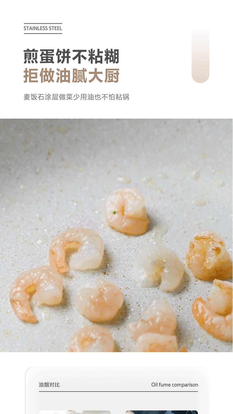 煎炒两用不粘锅,双向导流设计,麦饭石涂层,不沾不糊,高温耐磨稳定,易清洗,一冲即净,高纯度铝合金锅身,受热更均匀更耐用,轻油享美食,炒菜省时省力!