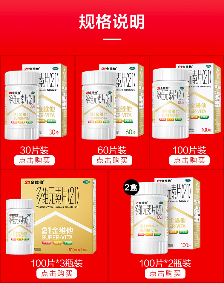 【满2件9折,满3件8折】21金维他多维元素片,34年健康陪伴,富含21种维生素、氨基酸和矿物质,科学配比,营养好吸收,每天两片,补足每日基本营养需求,增强体质