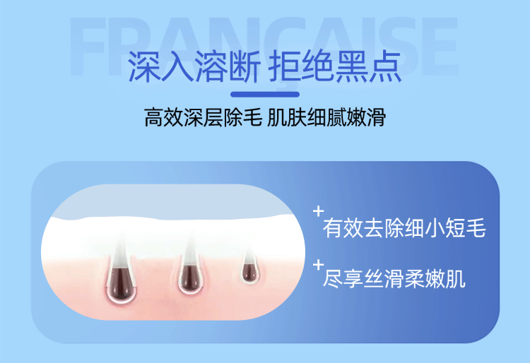 关晓彤代言,源自法国的品牌,含库拉索芦荟精华+VE,温和不刺激,直接厚涂一层5-10分钟,然后刮掉就好了,胳膊、腿部、腋下都能用!敏感肌肤适用!你和光滑如丝的肌肤,只差这一步~