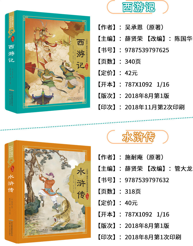 【任选1本14.8,书店起码三十多,哭值啊!】超厚300多页,顶市场4本厚,还是硬壳彩图精装,可以送人、也可以收藏自用,所有中小学生都要读的《四大名著》书,抓紧给孩子囤上一套!