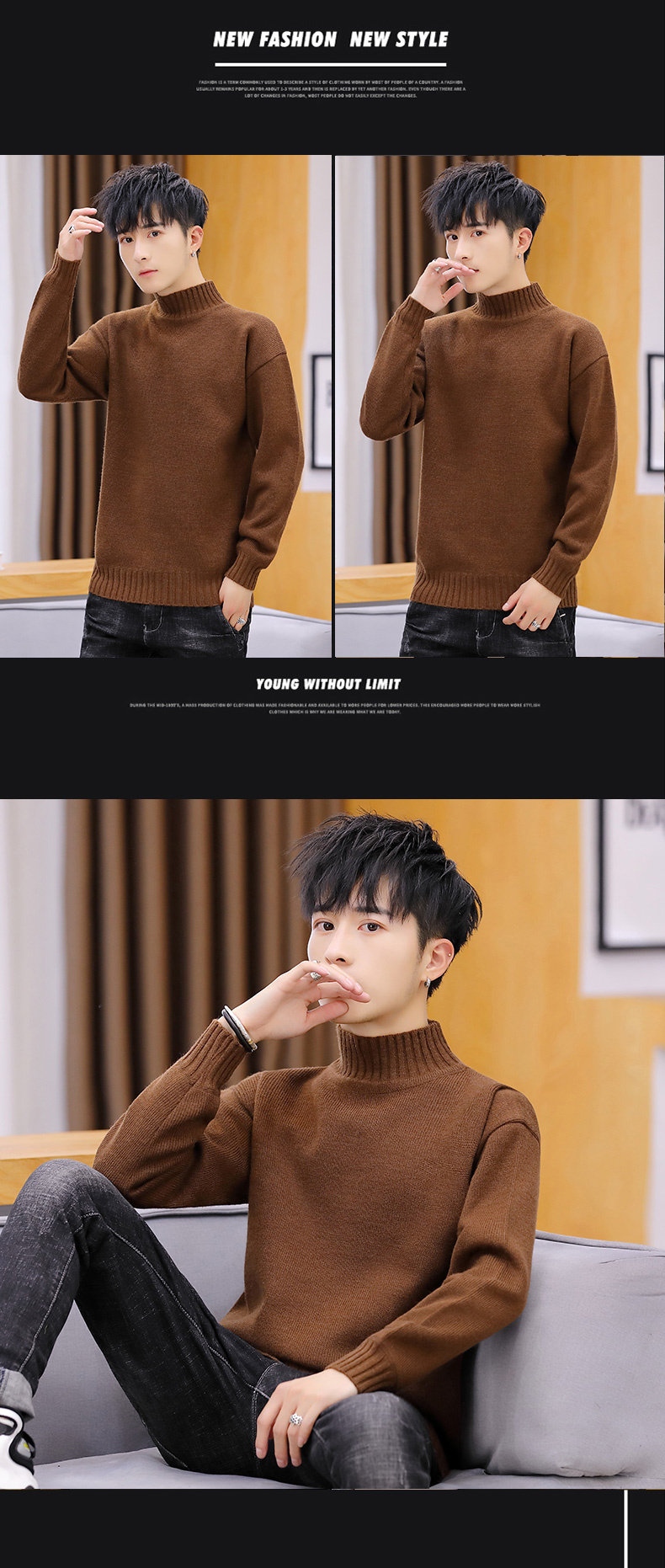 秋冬加绒男士高领毛衣韩版纯色针织衫套头 高端材质优质面料,手感柔软时尚潮流,舒适百搭时尚简约,3D立体裁剪,大气不失潮流风范! 89 189 https://img.alicdn.com/imgextra/i2/1091024714/O1CN01yXZ3t01kh3h3rstej_!!1091024714.jpg 淘宝 181 100