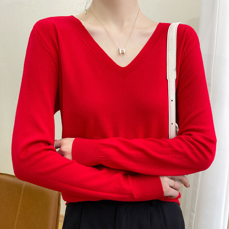 【49.5包邮】相伊恋人 女士纯色V领针织衫 白色 L 码